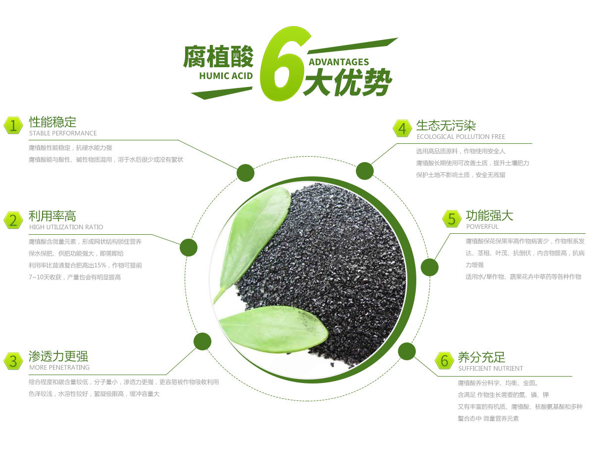 腐植酸養(yǎng)分科學(xué)、均衡、全面。含滿(mǎn)足 作物生長(zhǎng)需要的氮、磷、鉀